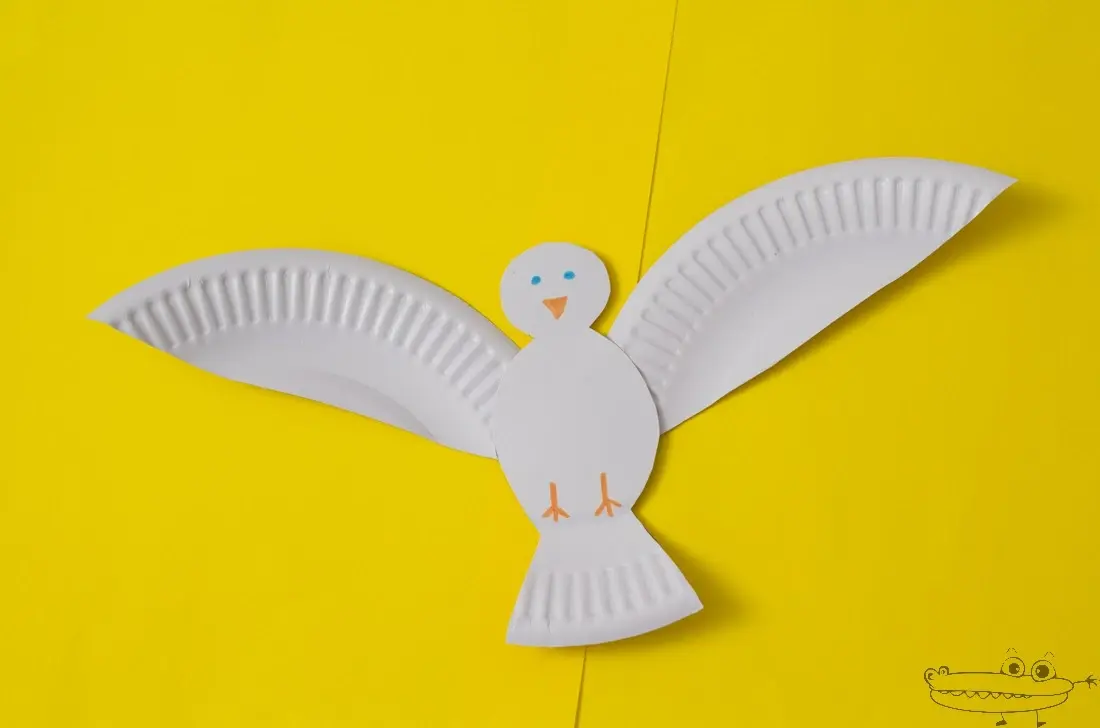 Esta sencilla paloma de la Paz es una manualidad perfecta para muchas ocasiones: comuniones, trabajos en clase sobre la paz, etc. Se hace en pocos minutos, por lo que es perfecta para los niños más pequeños.